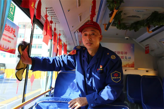 1月31日,除夕早7點(diǎn)多,駕駛員趙江提前來(lái)到車(chē)隊(duì),像往常一樣打掃衛(wèi)生、給車(chē)廂消毒。8點(diǎn)剛過(guò),他駕駛著211路公交從車(chē)隊(duì)出發(fā)。