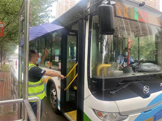 二分公司228路車隊長和車隊管理人員、駕駛員堅守工作崗位。預(yù)備黨員劉冰和車隊管理人員一起做好防汛、車輛檢查工作。劉冰說:“暴雨天駕駛員的責(zé)任更重大,要面對路段堵車,積水,運行時間要比平時更長,堅守崗位是我的職責(zé)。”