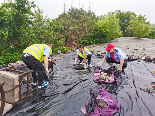 通利公司部分場區(qū)站務(wù)設(shè)施被暴雨損壞,工作人員及時修補(bǔ)、清理。