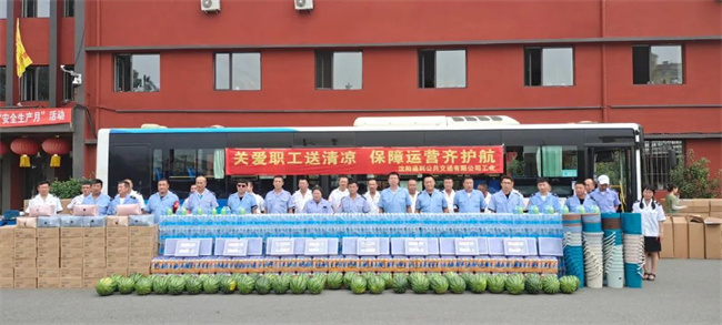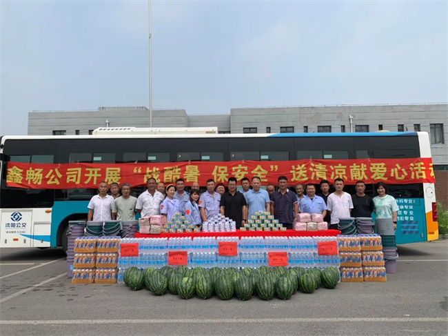8月4日上午,鑫暢公司開(kāi)展了“戰(zhàn)酷暑、保安全”送清涼獻(xiàn)愛(ài)心活動(dòng),為機(jī)關(guān)和各車隊(duì)發(fā)放礦泉水、香皂、毛巾、西瓜等防暑降溫用品,為一線職工遞上絲絲情懷。