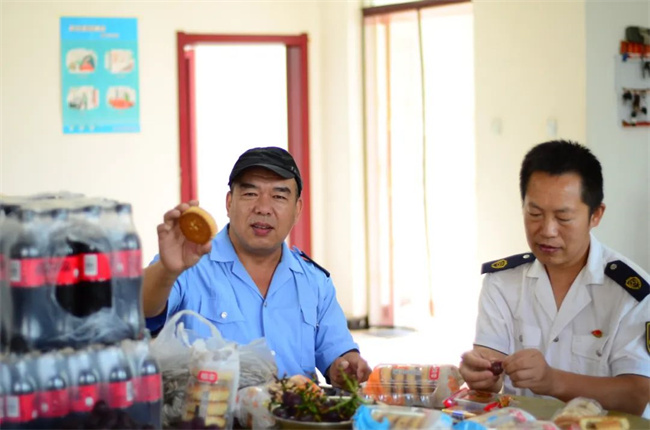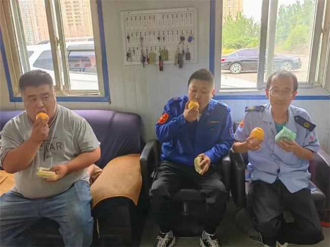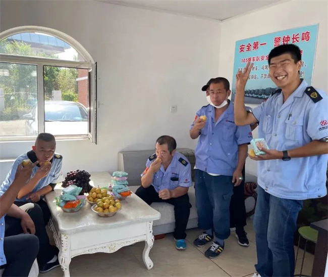 各車隊為駕駛員們準(zhǔn)備了香甜的月餅和豐富的水果。車隊就像一個大家庭,有駕駛員不常吃甜食,兩人分食一塊月餅也其樂融融,大家在車隊里度過了一個圓圓滿滿的中秋節(jié)。