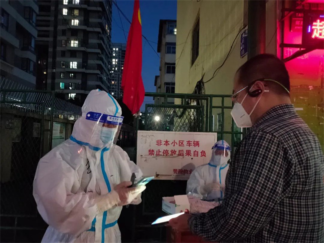 王眾介紹,轄區(qū)內有一位外國友人身體不好,志愿者上門進行核酸檢測時,這位老外深受感動,一直在說“Thank you!”
