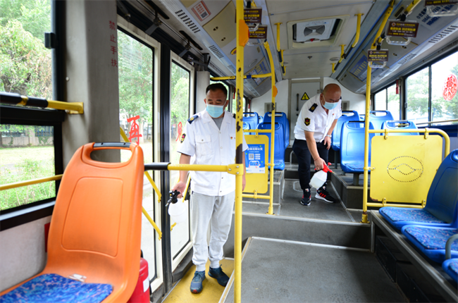 部分車隊在始發(fā)站設立志愿者服務點,指導上車乘客掃碼測溫。各車隊每輛公交車到終點后及時對車輛進行消殺,為市民提供良好、安全、舒適的乘車環(huán)境,用實際行動打贏疫情防控殲滅戰(zhàn)。