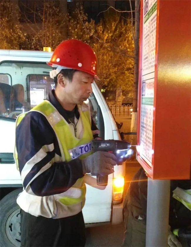 路務(wù)大隊職工放棄個人節(jié)假日和休息時間,加班加點(diǎn)修復(fù)破損候車?yán)炔A?、候車?yán)茸?、危險站桿,及時更換全市公交候車?yán)鹊男麄靼寮案鳁l線路的運(yùn)營站務(wù)信息。