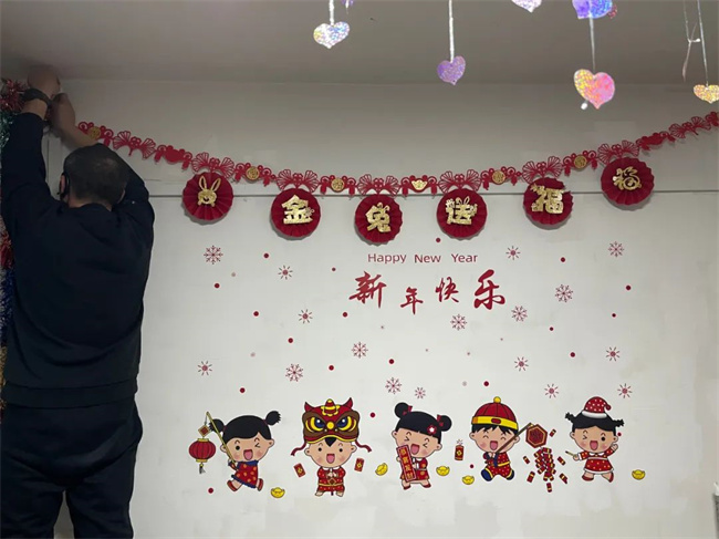 貼對(duì)聯(lián)、掛福字,通運(yùn)公司駕駛員歡喜過(guò)大年。