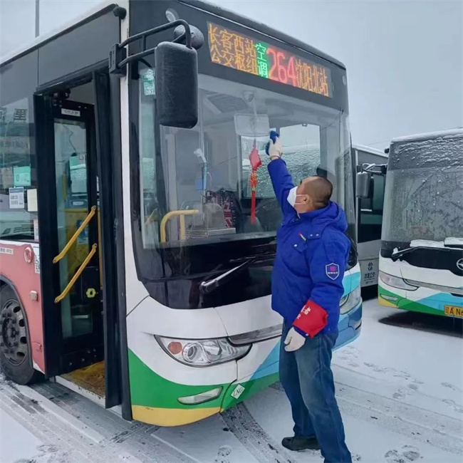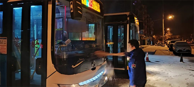 各車隊管理人員及駕駛員提前到崗,對車輛、場區(qū)積雪進行清掃,嚴格做好車輛發(fā)車前的各項準備工作。同時,車隊管理人員提醒駕駛員,車廂暖風系統(tǒng)全部開啟,為廣大市民提供安全、舒適、溫暖的公交服務。
