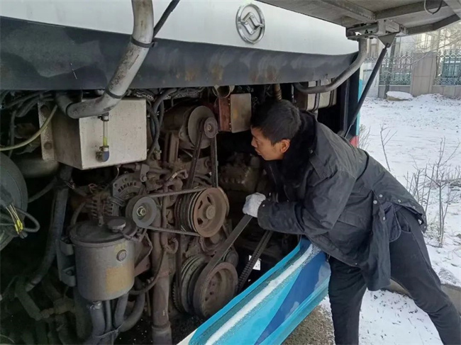 天還沒亮,各車隊管理人員、技術人員和駕駛員就抵達崗位,清掃車輛及場區(qū)路面積雪,排查車輛隱患,確保安全發(fā)車。車隊管理人員提前抵達線路易結冰路段,對道路結冰與濕滑情況進行摸排,并叮囑每一位發(fā)車的駕駛員注意行車安全。