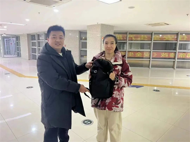 半個小時后,女大學生趕到車隊取回了丟失的背包,激動地說:“沒想到這么順利就能把背包找回來,多虧了駕駛員認真負責,要是背包丟了,我真不知道怎么辦才好。我真的很感動,真是太感謝了!”