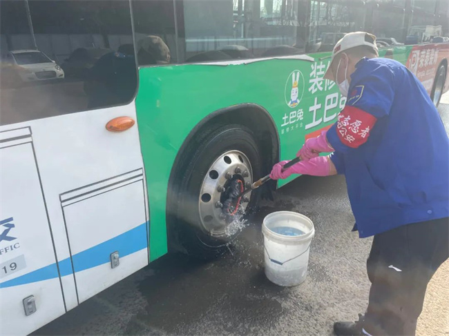 各車隊(duì)隊(duì)長(zhǎng)帶領(lǐng)駕駛員擦洗運(yùn)營(yíng)車輛,打掃車內(nèi)衛(wèi)生,駕駛員也自發(fā)加入其中,全力為乘客提供整潔舒適的乘車環(huán)境。