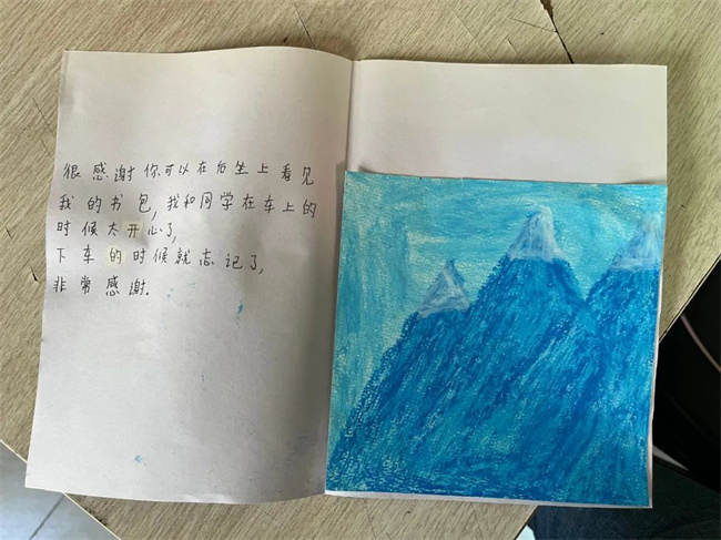 打開這封信,是一封由小朋友自己親手制作的感謝信,信中寫道:“很感謝你在后座上看見我的書包,我和我的同學(xué)在車上的時(shí)候太開心了,下車時(shí)就忘記了,非常感謝?!薄昂芨兄x你幫我找到了我的書包,書包對我來說很重要,謝謝?!?/p>