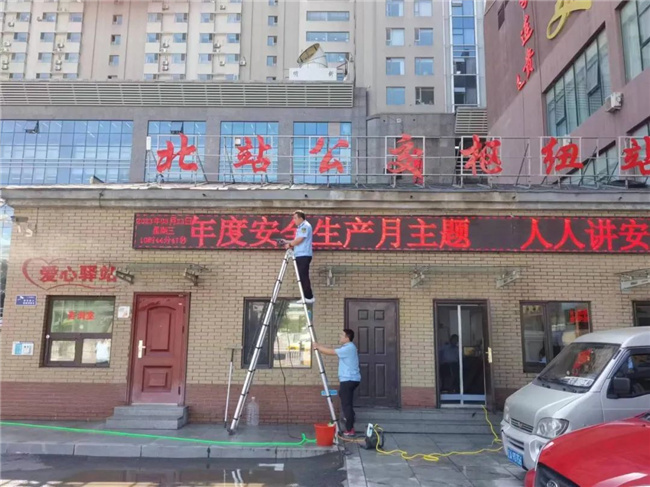 烈日當(dāng)頭,干勁十足,大家認(rèn)真對(duì)樞紐站的候車長(zhǎng)椅、站牌燈箱、小廣告、出入欄桿、愛(ài)心驛站、綠化帶、垃圾桶的環(huán)境衛(wèi)生等進(jìn)行全方位清理,確保環(huán)境衛(wèi)生干凈整潔,不留死角。