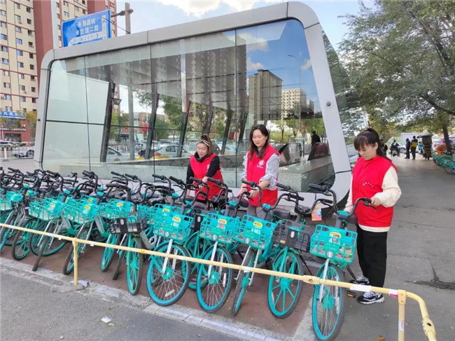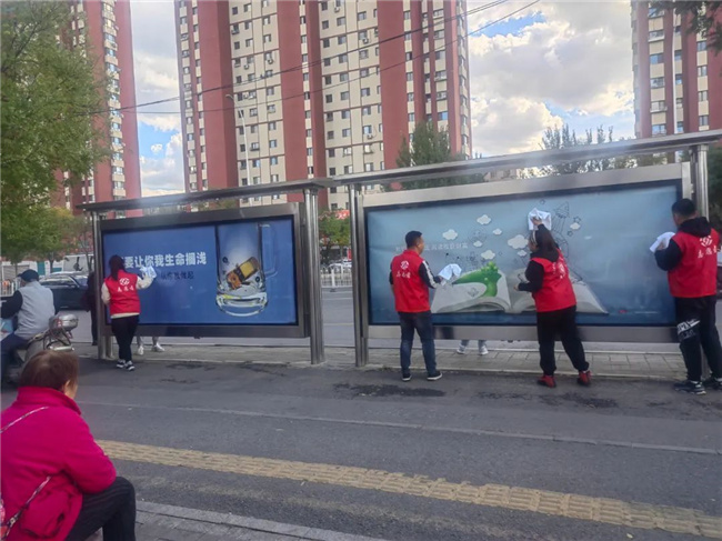 活動中,各位黨員積極奉獻(xiàn),主動清潔社區(qū)及周邊公共綠地內(nèi)的雜物和白色垃圾,對區(qū)域內(nèi)的宣傳欄、景觀、健身等設(shè)施進(jìn)行擦拭清理,擺放周邊的共享單車。大家身體力行,一道道忙碌的身影所到之處,贏得了過往市民的一致稱贊。