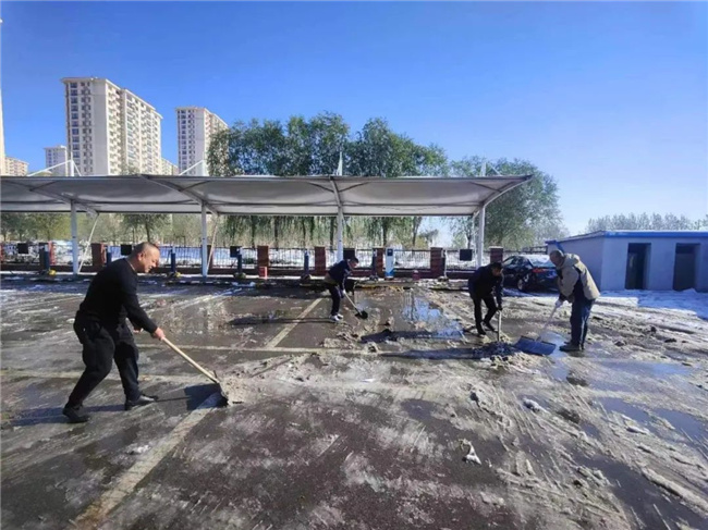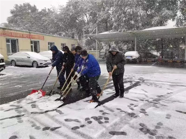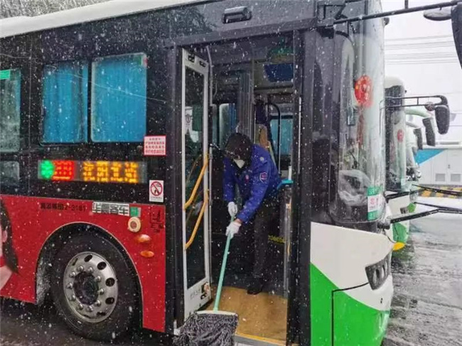 清掃公交場(chǎng)區(qū)積雪,保障車(chē)輛安全行駛。