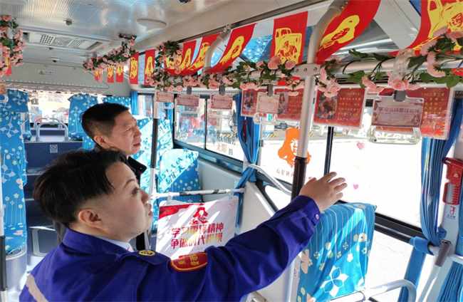 258路以“學(xué)習(xí)雷鋒精神、弘揚傳統(tǒng)美德”等主題制定車廂文化,讓車廂成為流動的課堂,打造以學(xué)習(xí)雷鋒精神為主題的車廂亮化活動,車隊以五大主題為基礎(chǔ),以張貼紅色基因宣傳圖、標(biāo)語等形式對車輛進行正能量宣傳,28輛單車車體全部以弘揚雷鋒精神紅色基調(diào)為載體分別制作了鮮艷的五星紅旗黨旗、雷鋒事跡說明、雷鋒粘貼等,讓雷鋒精神成為公交行業(yè)的文化品牌,讓雷鋒奉獻精神激勵世代銘刻在心,讓雷鋒精神在新時代廣泛傳播,在新時代綻放出璀璨的光芒。充分體現(xiàn)公交行業(yè)愛國愛黨、學(xué)習(xí)雷鋒、敬業(yè)勵志、敬老愛老等中心思想,極大地激發(fā)和調(diào)動了廣大駕駛員的工作熱情與干勁。