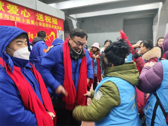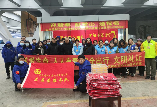 12月22日上午10點,沈陽小藍愛心公益團隊走進211.222路公交車隊開展“迎新年獻愛心送祝?!蔽繂柣顒?。