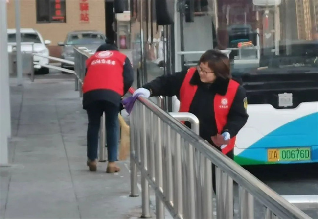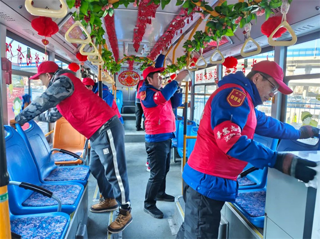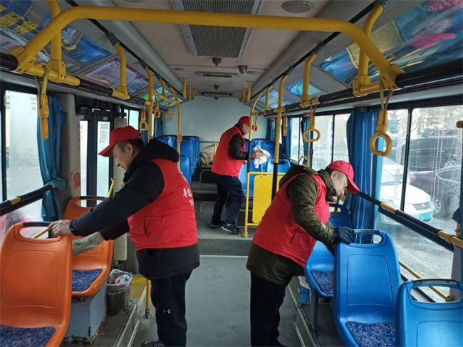 132.229.253路黨支部全體黨員及積極分子兵分兩路,清潔運(yùn)營車輛、清理場(chǎng)區(qū)及始發(fā)站候車?yán)刃l(wèi)生,為乘客提供整潔舒適的乘車環(huán)境。