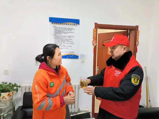 240路車隊把環(huán)衛(wèi)工人請到了車隊的愛心驛站。在愛心驛站里,240路駕駛員為環(huán)衛(wèi)工人獻上了熱騰騰的茶水,讓環(huán)衛(wèi)工人在寒風中感到一絲絲溫暖。
