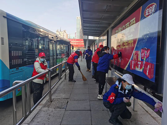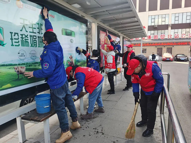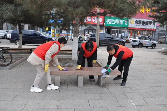 活動中,志愿者們手拿抹布、掃帚等清潔工具,對廣場、綠地的衛(wèi)生及周邊的隔離護欄、公交候車亭及站名牌、街路名牌、果皮箱等公共設(shè)施進行徹底擦拭清潔,并將周邊的共享單車擺放整齊。志愿者們充分發(fā)揚“不怕臟、不怕累”的奉獻精神,用實際行動換來了廣場環(huán)境面貌的煥然一新,也收獲了過往市民群眾的連連稱贊。
