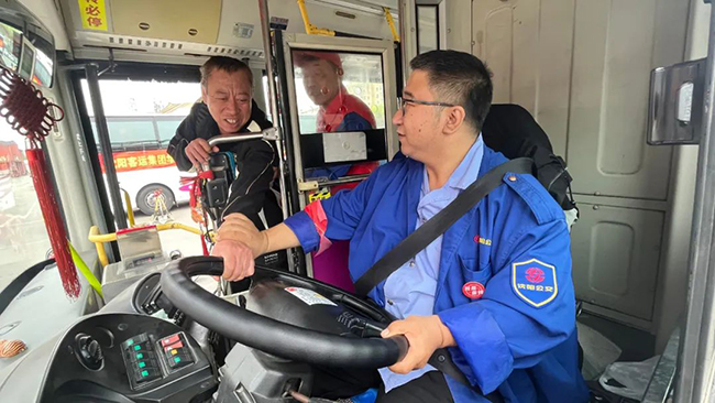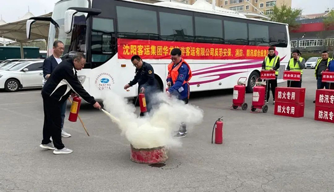 培訓(xùn)結(jié)束后,在場(chǎng)人員來(lái)到戶(hù)外停車(chē)場(chǎng)開(kāi)展綜合應(yīng)急演練。本次演練模擬了乘客攜帶不明液體乘車(chē)時(shí)駕駛員或安全員的例行檢查,乘客與駕駛員發(fā)生爭(zhēng)執(zhí)時(shí)危險(xiǎn)舉動(dòng)的處置方法,車(chē)內(nèi)自燃時(shí)駕駛員疏散乘客下車(chē)的方式及正確使用滅火器的方法和注意事項(xiàng)。