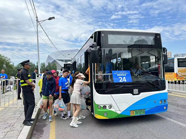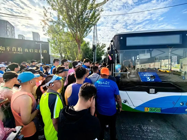 凌晨4時(shí),10余臺(tái)賽事保障車輛發(fā)動(dòng)機(jī)引擎在此刻轟轟鳴響,通利、康龍公司公交駕駛員、調(diào)度人員、崗點(diǎn)執(zhí)勤人員、指揮人員等奔赴各自沈馬保障工作崗位,免費(fèi)接駁世界各地前來(lái)參加比賽的馬拉松愛(ài)好者們。早7時(shí),10余臺(tái)存衣運(yùn)輸車輛準(zhǔn)時(shí)到達(dá)比賽起點(diǎn),為大賽圓滿進(jìn)行助力。
