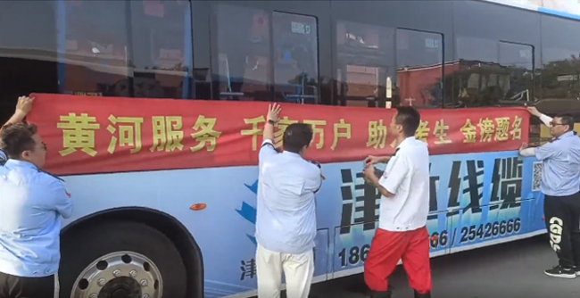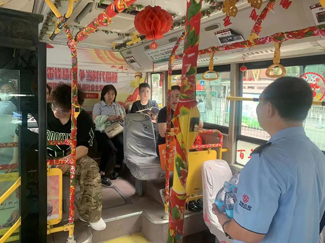 高考前一天,沈蘇公司車隊(duì)在車內(nèi)張貼鼓勵(lì)考生的條幅、裝飾一些溫馨的圖案。高考當(dāng)天,324路車隊(duì)派出一輛公交車,為第三十中學(xué)考點(diǎn)的學(xué)生及家長(zhǎng)提供休息場(chǎng)所。