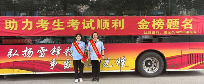 高考期間,一、二分公司王樹(shù)祥勞模黨員志愿者服務(wù)隊(duì)所在的224路車隊(duì)1129號(hào)車、沈陽(yáng)市精品示范線路158路車隊(duì)0452號(hào)車變身“愛(ài)心助考車”。