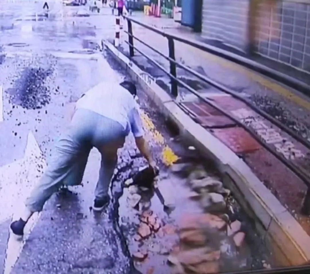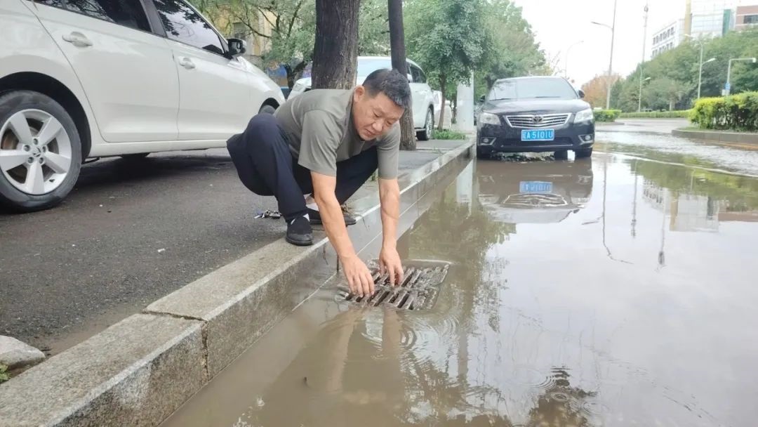 下了幾乎一夜的雨將254路車(chē)隊(duì)門(mén)前道路幾乎淹沒(méi),254路車(chē)隊(duì)長(zhǎng)劉佳寧拿起鐵鍬等工具,對(duì)下水道附近的污垢進(jìn)行清理,排除積水。