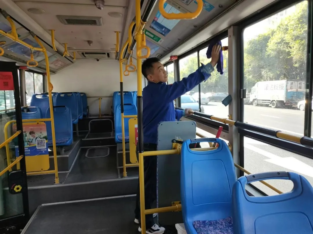 國慶前夕,駕駛員精心清潔車輛、裝扮車廂,處處洋溢著節(jié)日氣氛。