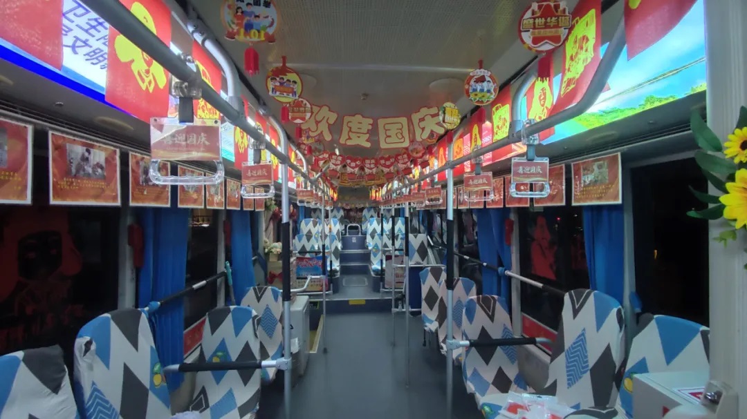 各車隊準備了各式各樣的裝飾品精心裝扮自己的車廂。駕駛員們將自己對祖國的美好祝愿注入在這十米車廂之中,希望能把這份心意傳遞給每一個人。市民們在乘車時被這份情感所感染,也紛紛留下了自己的心愿和祝福。