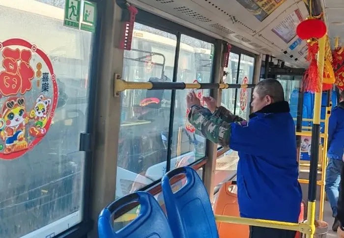 據(jù)了解,元旦前夕,沈陽(yáng)客運(yùn)集團(tuán)按照全市“我是雷鋒”——沈陽(yáng)市窗口行業(yè)文明誠(chéng)信服務(wù)寵客(qiě)行動(dòng)工作安排,落實(shí)全市“雙節(jié)”節(jié)日氛圍布置工作要求,積極開(kāi)展“布置車廂,扮靚沈陽(yáng)”行動(dòng),各車隊(duì)利用行車間歇和休息時(shí)間裝扮車輛,懸掛新年拉花、紅燈籠,張貼新年窗花及融入“蛇年”元素的貼紙等。目前,已有1188臺(tái)途經(jīng)主要街路、景區(qū)、商業(yè)街區(qū)的公交車輛完成了裝飾,車內(nèi)年味十足,客運(yùn)集團(tuán)計(jì)劃在春節(jié)之前完成全部運(yùn)營(yíng)車輛的裝飾布置工作。