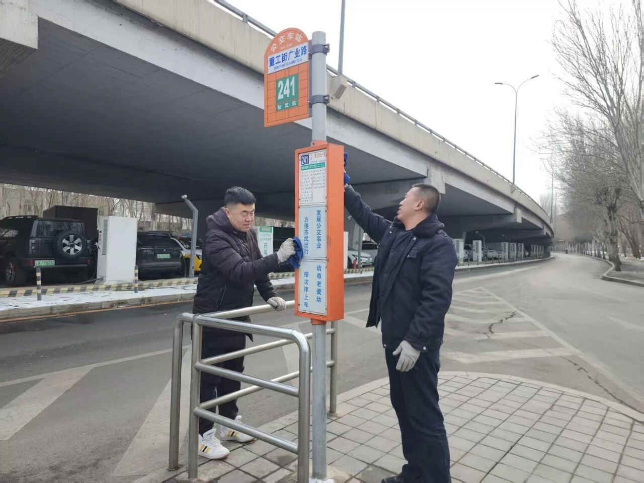 公交站臺不僅是市民出行的“避風(fēng)港”,更是展示城市文明的“第一窗口”?;顒又校髦Р恐驹刚邆兡闷饞咧?、抹布、鏟刀等工具,深入車隊周邊站區(qū)開展清潔行動。他們不放過任何一個細(xì)節(jié)——彎腰拾起嵌在地磚縫隙中的煙頭,踮腳擦拭候車亭上的積塵。經(jīng)過一番“地毯式”的清掃,候車亭煥然一新,為過往市民營造出干凈、舒心的候車環(huán)境,讓每一次等候都更有溫度。