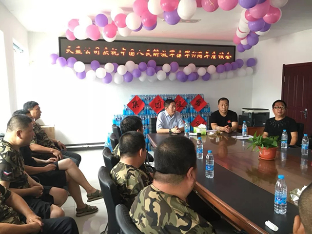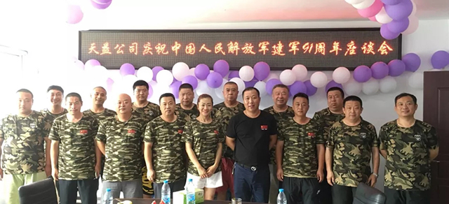 2018年“八一”是中國人民解放軍建軍91周年紀念日。在節(jié)日來臨前夕,天益公司召開慶祝中國人民解放軍建軍91周年座談會。