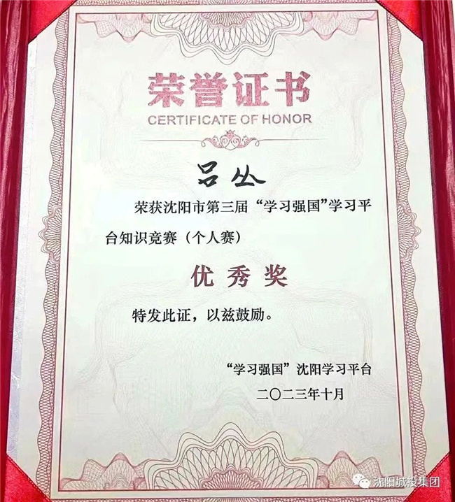 在剛剛結(jié)束的沈陽市第三屆“學習強國”學習平臺知識競賽(個人賽)中,代表市國資系統(tǒng)參賽的沈陽客運集團呂叢同志,獲得個人賽優(yōu)...