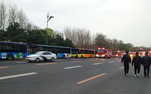 按照市交通局指令,沈陽客運(yùn)集團(tuán)有限公司迅速啟動應(yīng)急響應(yīng),成立棋盤山大火救援疏散臨時指揮部,以最短時間集結(jié)公交車輛82輛(不含棋盤山公交線路的168路)做為疏散預(yù)備車,其中鑫暢公司7輛、通利公司27輛、天益公司48輛。期間,疏散市民合計出車13輛次,疏散居民378人,其中5輛車由靜安康復(fù)中心向馬耳山分院運(yùn)送160余人;1輛車由上木村向英達(dá)小學(xué)運(yùn)送23人;1輛車由泗水村向英達(dá)中學(xué)運(yùn)送25人;1輛車由何氏醫(yī)學(xué)院向龍之夢地鐵站運(yùn)送40人;5輛車由劉家屯養(yǎng)老中心向沈河區(qū)、大東區(qū)、皇姑區(qū)、渾南區(qū)養(yǎng)老中心運(yùn)送130人。