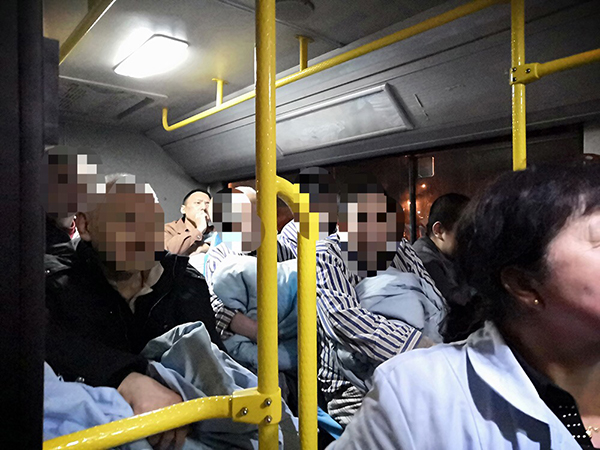在預(yù)備車輛前往集結(jié)地點(diǎn)的途中,鑫暢公司384路車隊徐躍接到了位于線路附近沈陽靜安國際心理康復(fù)中心的求助電話,那里有醫(yī)患人員近160余人需要緊急撤離。集團(tuán)公司臨時指揮部立即下達(dá)384路車隊就地組織執(zhí)行疏散命令。384路車隊根據(jù)現(xiàn)場情況,留下五輛車執(zhí)行撤離輸送任務(wù),另外兩輛車前往集結(jié)點(diǎn)待命。