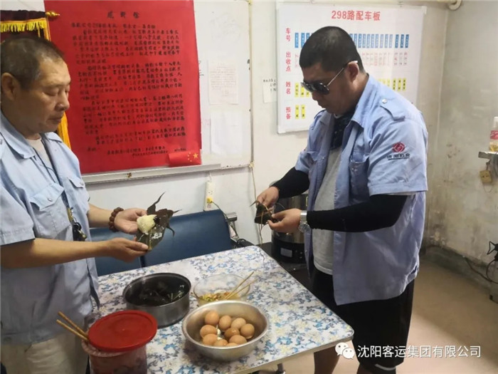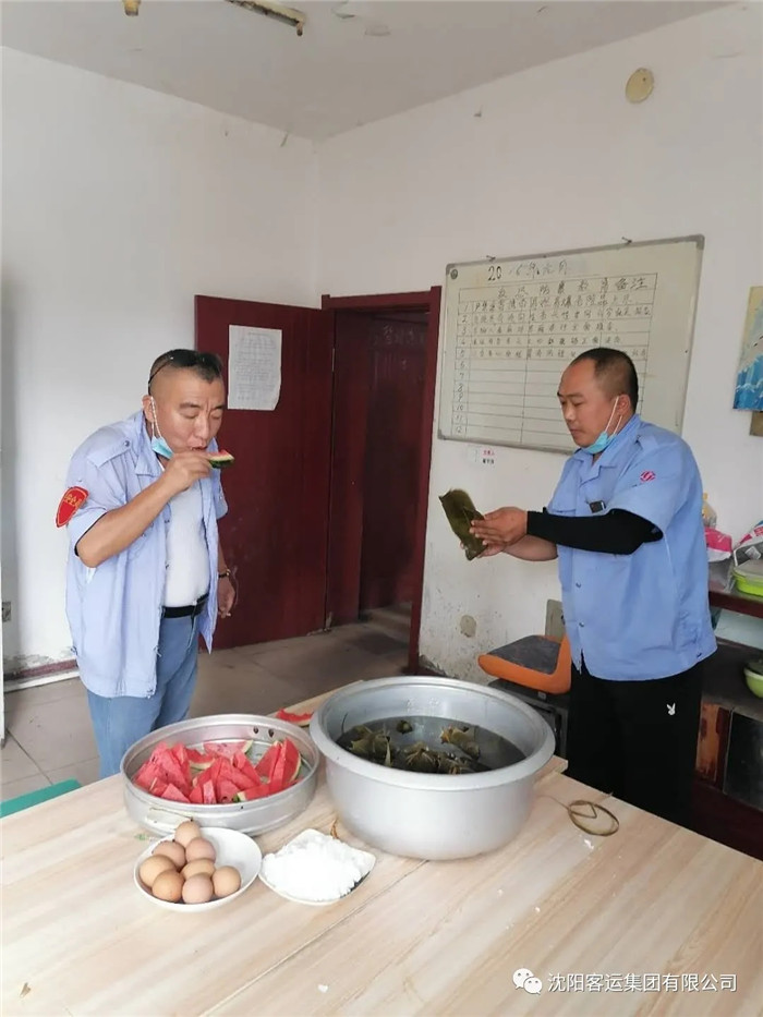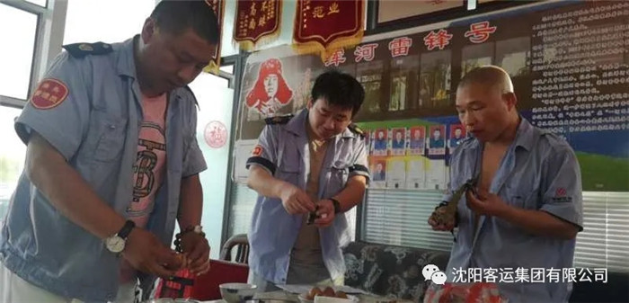 端午節(jié),239、252車隊(duì)為一線員工準(zhǔn)備了粽子、雞蛋、水果等食品,駕駛員們吃粽子頂雞蛋,享受著節(jié)日的快樂。