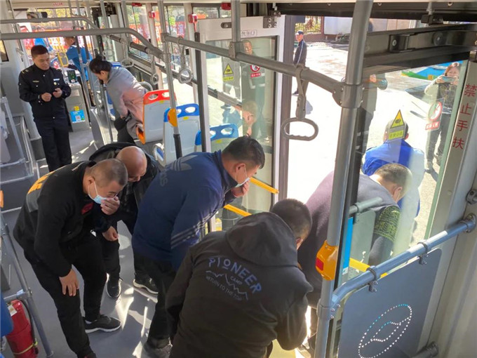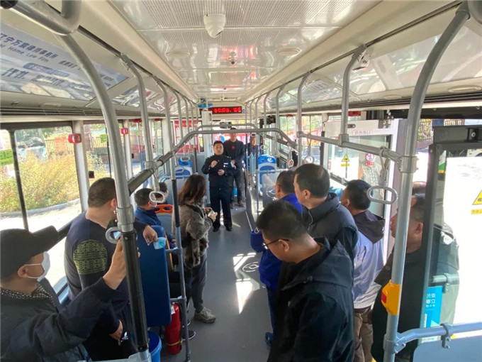 消防安全演練中,李教官在公交車上講解安全錘的正確使用方法,并模擬公交車失火后的逃生方法及注意事項(xiàng),迅速、有序、規(guī)范地從公交車出口疏散。隨后,李教官詳細(xì)介紹滅火器的正確使用方法及滅火時(shí)的注意事項(xiàng),現(xiàn)場(chǎng)指導(dǎo)職工進(jìn)行滅火演練。