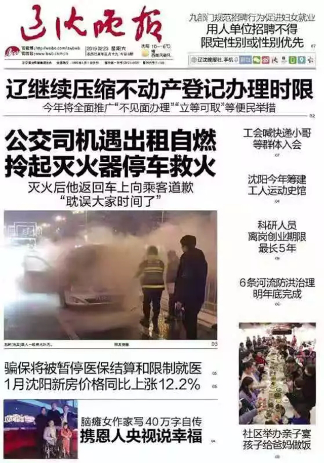 遼沈晚報(bào)得知此事之后對當(dāng)事人和車隊(duì)進(jìn)行了采訪宣傳報(bào)道?!翱赡芫褪浅鲎廛嚲€路老化引起的,我車上的滅火器容量是 4 公斤的,比私家車上的滅火器容量大,上去一噴就見效果。公司每年都組織兩次消防實(shí)戰(zhàn)演練,所以面對自燃等突發(fā)狀況,有信心對付?!壁w林對記者說道。